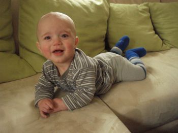 ich kann sitzen und krabbeln, aber autofahren gehört noch nicht zu meinen Stärken :-)